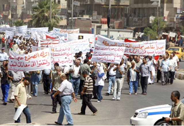 من جانب آخر، تحولت مسيرة لإحياء ذكرى ثورة 14 يوليو/ تموز 1958 وسط بغداد إلى تظاهرة تطالب قادة الكتل السياسية الفائزة في الانتخابات التشريعية بالإسراع بتشكيل الحكومة والابتعاد عن الصراع على المناصب والمنافع الخاصة بعد أربعة أشهر من الانتخابات التشريعية.