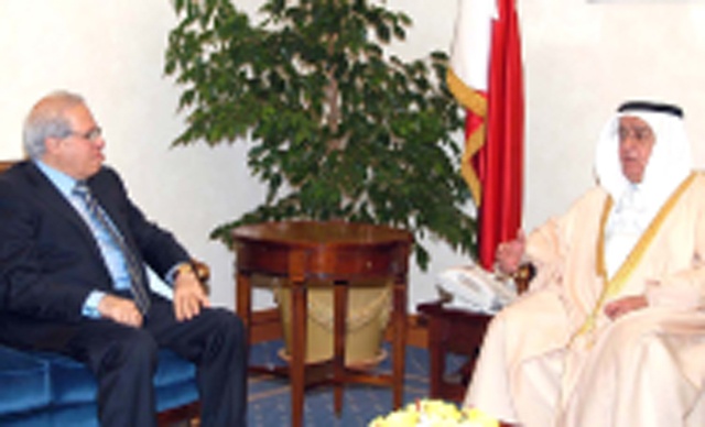 نوه نائب رئيس مجلس الوزراء سمو الشيخ محمد بن مبارك آل خليفة خلال استقباله بمكتبه في قصر القضيبية صباح يوم أمس (الأربعاء) رئيس مجلس أمناء الكلية الملكية الايرلندية للجراحين - البحرين فيصل الموسوي، بالبرامج والخطط التي تنفذها الكلية في المملكة.
