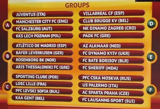 - المجموعة الرابعة: فياريال (اسبانيا) وكلوب بروج (بلجيكا) ودينامو زغرب (صربيا) باوك (اليونان)