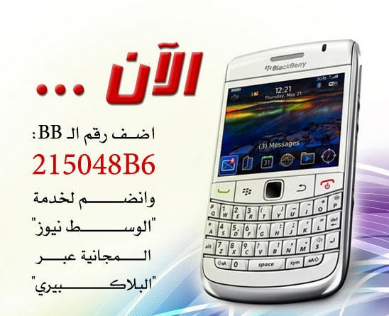 الآن... بامكان المزيد من قرائنا الانضمام الى خدمة "الوسط نيوز" المجانية عبر "البلاكبيري"