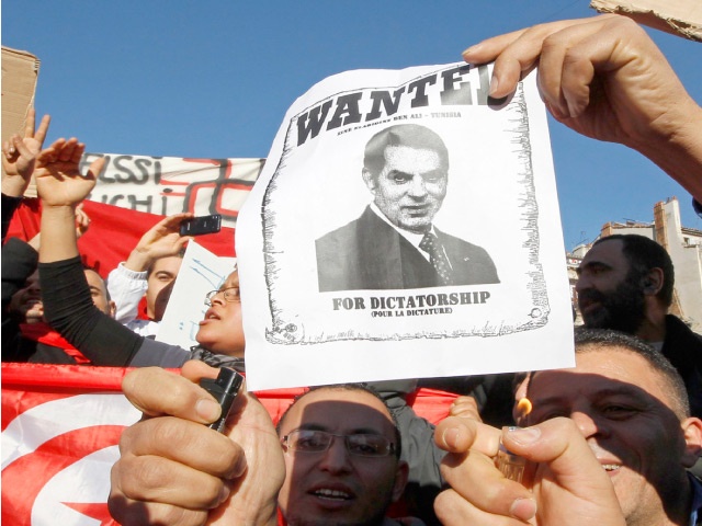 وفر زين العابدين بن علي (74 سنة) الذي حكم البلاد 23 سنة الجمعة إلى السعودية، نزولاً عند حركة احتجاج عمت مختلف أنحاء البلاد وأسفرت عن سقوط عشرات القتلى برصاص قوات الأمن، واستمرت شهراً ضد نظامه.