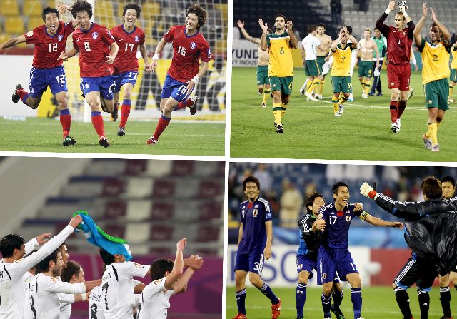 يذكر أن نهائيات كأس العالم في جنوب إفريقيا العام 2010 شهدت غياب أي منتخب من عرب آسيا للمرة الأولى منذ مونديال اسبانيا العام 1982، إذ مثلت القارة فيها منتخبات استراليا واليابان وكوريا الجنوبية وكوريا الشمالية. وحتى منتخب إيران، الوحيد الذي حقق ثلاثة انتصارات في الدور الأول من البطولة الحالية، لم يقو على مجاراة نظيره الكوري الجنوبي أمس الأول فسقط أمامه بهدف بعد التمديد، مع انه اعتمد نهجا دفاعيا للحد من سرعة الكوريين وخطورتهم.