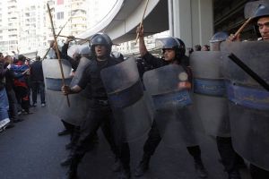 وهتف المتظاهرون "مش عايزينك (لا نريدك)" قبل ان تفرقهم قوات الشرطة مستخدمة القنابل المسيلة للدموع والرصاص المطاطي ليتجمعوا على الاثر في مجموعات صغيرة.