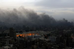 وعلى جدران العديد من المباني العامة في هذا الحي، كتبت شعارات معادية للحكومة مثل "يسقط النظام". وقال الطالب الشاب عمر احمد "ما يحدث اليوم اجمل من الحلم، لم اصدق ابدا ان ذلك يمكن ان يحدث يوما" في الوقت الذي انتشرت فيه رائحة الفوسفور في وسط العاصمة المصرية التي حلقت فوقها طائرات مروحية.