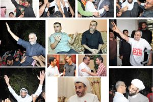 كما شهد ميدان اللؤلؤة استقبالاً حاشداً لعدد من المفرج عنهم من متهمي ما يعرف بـ»الخلية الإرهابية»، وذلك بعد أن خرجت مسيرة حاشدة من منزل الشيخ محمد حبيب المقداد إلى دوار اللؤلؤة، تقدمها كل من الأمين العام لجمعية الوفاق الشيخ علي سلمان، والأمين العام لحركة الوفاء الإسلامية الشيخ عبدالجليل المقداد والناطق الرسمي باسم حركة الوفاء عبدالوهاب حسين بالإضافة لعدد من النشطاء السياسيين والحقوقيين، مع عدد من المفرج عنهم.