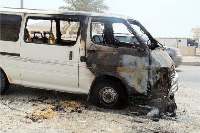 اندلع حريق في حافلة يقودها آسيوي يوم أمس الأربعاء (11 مايو/ أيار 2011) بالقرب من مدخل قرية العكر على شارع جابر الأحمد الصباح، فيما تمكن سائقها من الخروج منها قبل وصول سيارة الإطفاء ولم تسجل أي إصابة بالحادث.