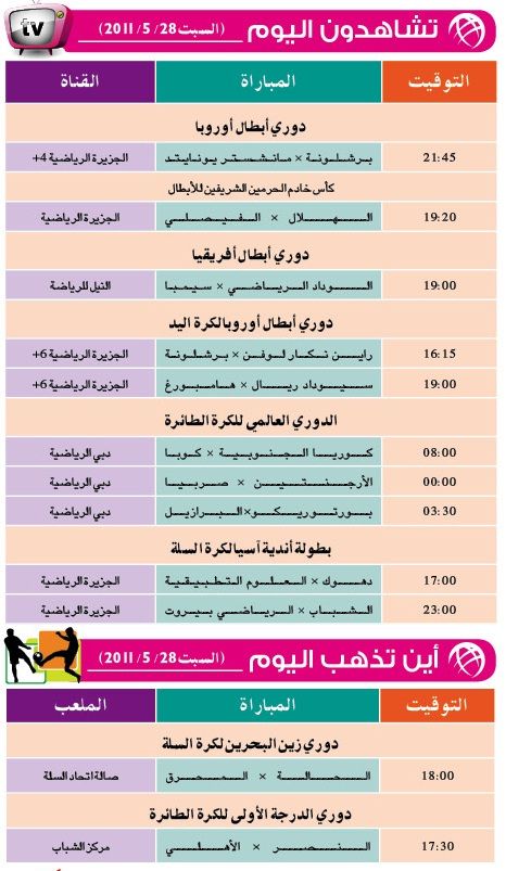 يضع الوسط الرياضي أمامكم برنامج اليوم الرياضي سواءً فيما يتعلق بالشأن العالمي أو المحلي.