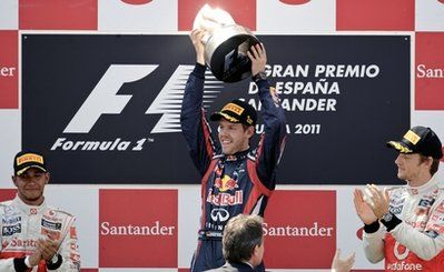 وراهن فيتيل على إطارات سيارة ريد بول واستفاد من إيقاف السباق لمدة عشرين دقيقة.