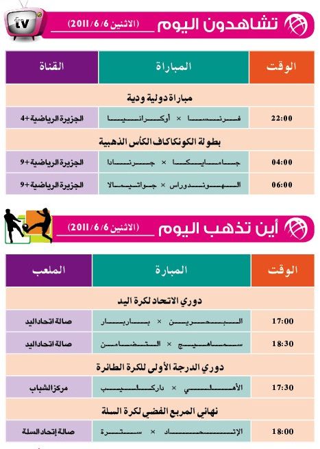 يضع الوسط الرياضي أمامكم برنامج اليوم الرياضي سواءً فيما يتعلق بالشأن العالمي أو المحلي.