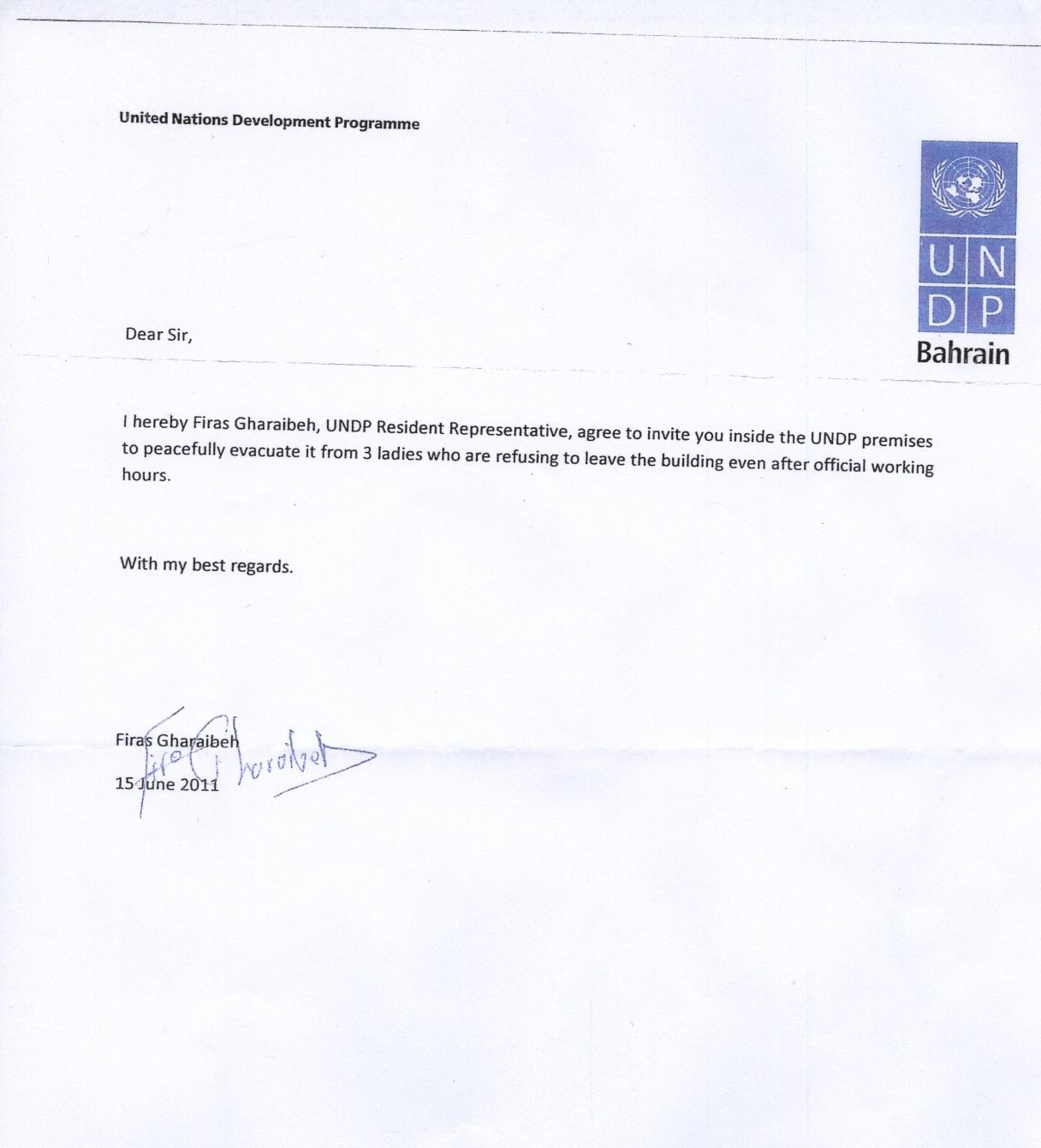 وأشار إلى أن الإجراء الذي تم كان بناء على طلب كتابي رسمي ( مرفق صورة منه ) تلقته وزارة الداخلية من مسئولي مقر الأمم المتحدة لدى المملكة ، حيث تم إرسال الشرطة النسائية لإخراج الفتيات واصطحابهن إلى مبنى مديرية الشرطة لتحرير محضر بالواقعة وتحويلهن للنيابة العامة والتي أمرت بحفظ التحقيق في نفس اليوم بعد أن تقدم مسئولو الأمم المتحدة بتنازل عن بلاغهم .