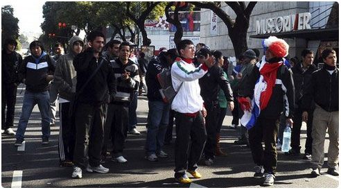 قامت مجموعة من مشجعي أوروغواي وباراغواي أمس الجمعة بقطع الطريق أمام استاد "مونومينتال" بالعاصمة الأرجنتينية بوينس آيرس مطالبين بطرح المزيد من التذاكر للبيع لحضور مباراة المنتخبين بعد غد الأحد في نهائي كأس أمم أميركا الجنوبية 2011 لكرة القدم (كوبا أميركا) المقامة في الأرجنتين.