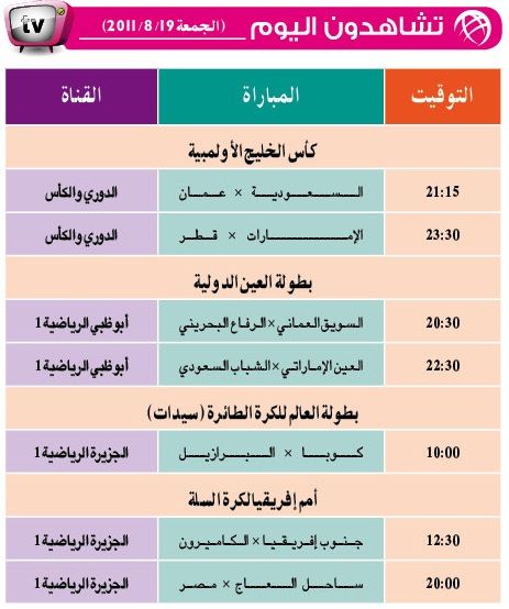 يضع الوسط الرياضي أمامكم برنامج اليوم الرياضي سواءً فيما يتعلق بالشأن العالمي أو المحلي.
