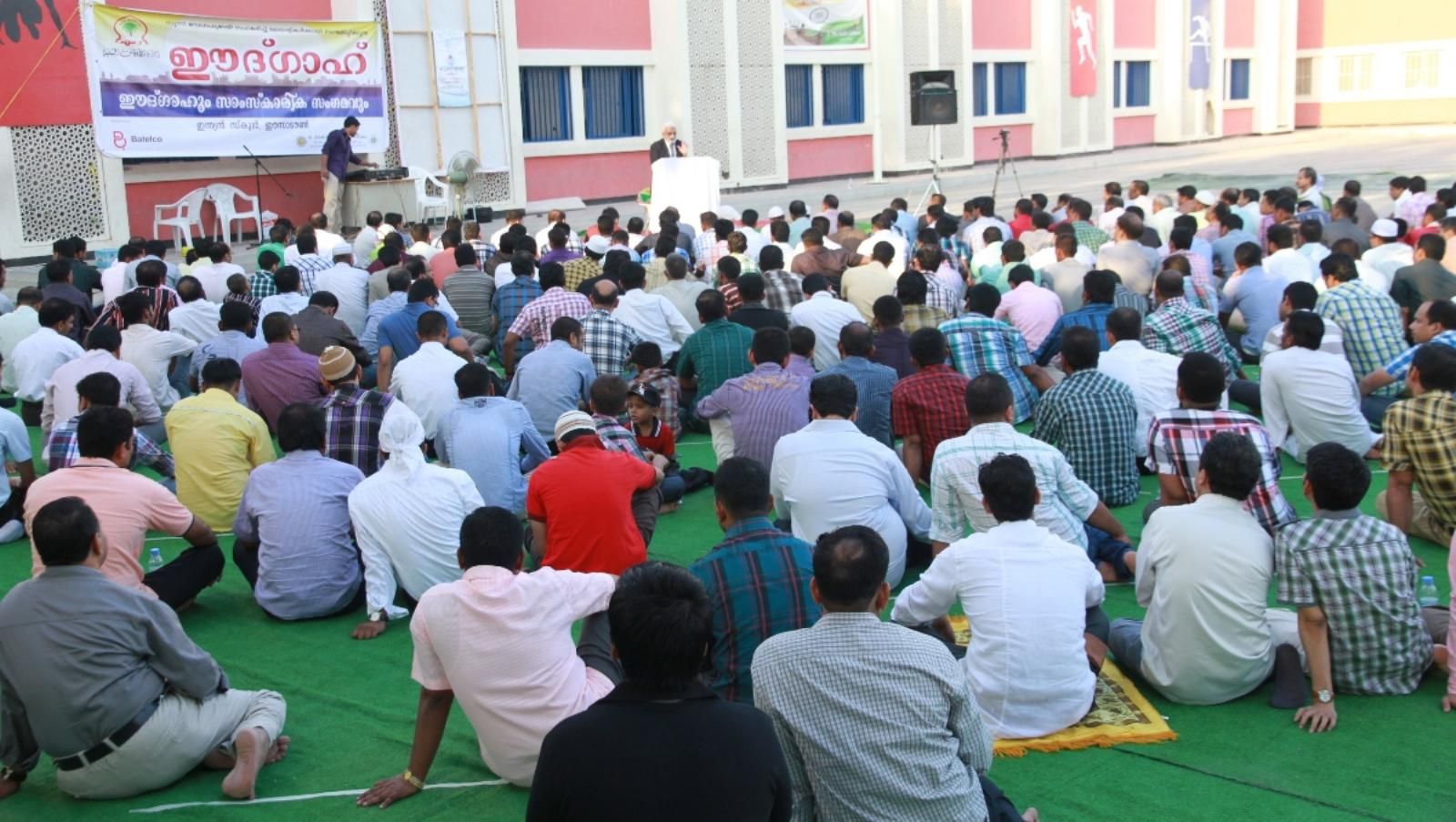 وقد اجتمع المصلون وبحضور عدد من كبار المسئولين في السفارة الهندية في باحة المدرسة الهندية بمنطقة مدينة عيسى، وفور الانتهاء من الصلاة احتفل جموع المصلين بحلول عيد الفطر المبارك، سائلين المولى أن يعيده على الجميع بالخير والبركات.
