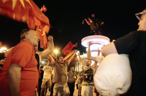 وتجمع نحو خمسة آلاف شخص في سكوبي عاصمة مقدونيا وهي إحدى جمهوريات يوجوسلافيا السابقة واحتفلوا بفوز مقدونيا ومن المتوقع زيادة عدد الجماهير خلال هذه الليلة.