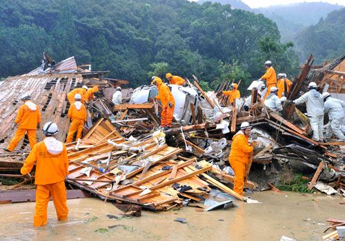 وذكرت هيئة الإذاعة والتليفزيون اليابانية(إن إتش كيه) أن امرأة لقيت حتفها واعتبر سبعة أشخاص آخرين في عداد المفقودين بعد أن جرفت مياه نهر هائج منزلين في قرية "توتسوكاوا" بمقاطعة "نارا" مساء السبت.