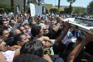 وقال أطباء في المستشفى انه لم يقتل او يصب احد في الهجوم. وأعقب ذلك تبادل كثيف لنيران الرشاشات الالية وانطلق عدد كبير من قوات المجلس الوطني الانتقالي لملاحقة المهاجمين.