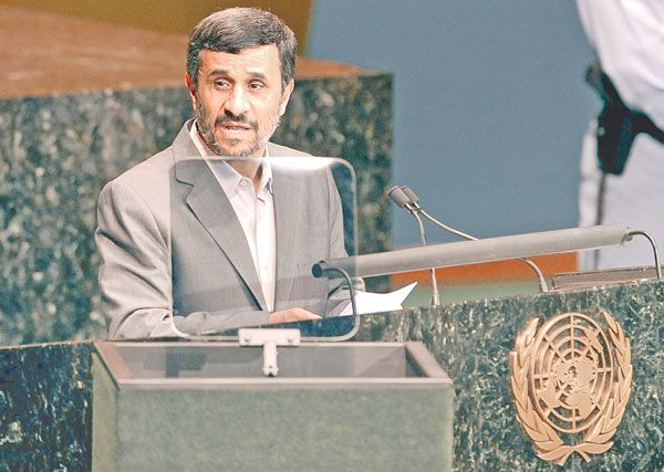 ولم يورد أحمدي نجاد سوى إشارة عابرة إلى القضية الفلسطينية التي تطغى على اجتماعات الجمعية العامة للأمم المتحدة هذا العام ولم يعلق على خطط الفلسطينيين الخاصة بطلب الاعتراف بدولتهم الوليدة من مجلس الأمن الدولي.