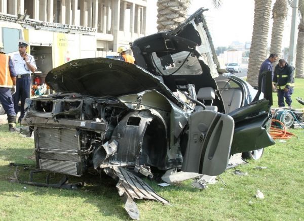 وكان سائق السيارة فقد السيطرة على قيادتها بالقرب من فندق الخليج بمنطقة الجفير ، ما أدى لانحرافها وارتطامهما بنخلة ، الأمر الذي تسبب بانحشارهما بداخل السيارة التي انكفأ هيكلها بشكل نص دائري بالنخلة قبل أن يتمكن أفراد الدفاع المدني تخليصهم من بين حطام المركبة ليتم نقلهما بواسطة الإسعاف للمستشفى لتلقي العلاج ، فيما باشر أفراد شرطة المرور تدعمهم عدة دوريات للنجدة التحقيق في ظروف وملابسات وقوع الحادث الذي خلف أضرارا جسيمة بالسيارة المتسببة فيه .
