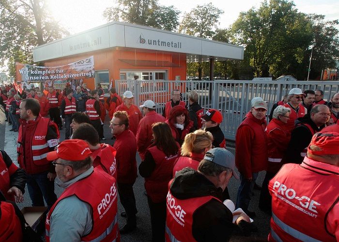أضربت أكثر من نصف القوة العاملة بقطاع المعادن في النمسا اليوم الجمعة في تأييد للمطالب بزيادة الأجور بنسبة 5ر5% .وانضم حوالي 100 ألف عامل للإضراب من بينهم أولئك الذين يعملون لدى شركة "فوست ألبينه" أكبر منتج للصلب في النمسا وفقا لما ذكرته نقابة عمال المعادن.وهذه هي المرة الأولى منذ 25 عاما التي يتم فيها تنظيم إضراب في صناعة المعادن.قررت النقابة اتخاذ الخطوة بعد عدم نجاح الجولة الثانية من المفاوضات بين أرباب العمل الذين عرضوا زيادة للأجور بنسبة 65ر3% .ويحصل 185 ألف عامل نمساوي بقطاع المعادن على زيادات بسيطة فقط بالأسعار الحقيقية في السنوات القليلة الماضية. ويطالبون بأن يتم تعويضهم لمواجهة التضخم فضلا عن نصيب لهم في الزيادات الإنتاجية الأخيرة.