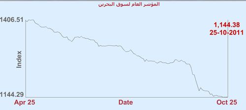 تراجع المؤشر العام لبورصة البحرين لدى نهاية تعاملات جلسة يوم الثلثاء، بمقدار 0.02 نقطة ليغلق عند مستوي 1144.38 نقطة مقابل 1144.4 نقطة .