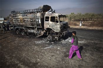 وقالت المتحدثة باسم السلطات المحلية روشنا خالد ان "انفجار قنبلة لاصقة صغيرة احدث فجوة في الشاحنة الصهريج وعندما تجمع الناس من حولها لجمع الوقود، وقع انفجار اقوى".