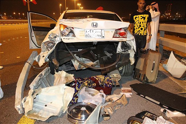 وكان الخليجي فقد السيطرة على قيادة السيارة فيما كان متجهاً ناحية الحد ما أدى لالتفافها وتدهورها لترتطم بالسياج الحديد للشارع ، فيما نجا السائق دون إصابات بالحادث ، فيما تولت الرافعة العمل على إزاحة السيارة وتحريكها من مكانها .