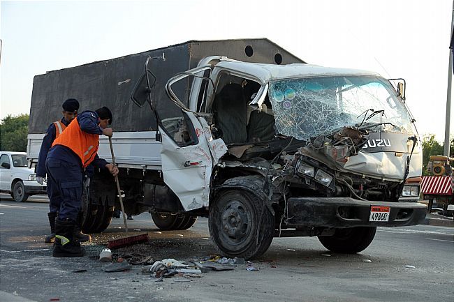 وجاء في التفاصيل إلى أن وافداً آسيوي كان يقود مركبة من نوع " سكس ويل " ومعه راكبان آسيويان على شارع الملك حمد بمنطقة عسكر عندما اصطدم مؤخرة شاحنة كبيرة يقودها مواطن بحريني بالقرب من تقاطع الإشارة الضوئية هناك ، وقد أسفر الحادث عن وفاة أحد الركاب في موقع الحادث مـتأثراً بالإصابة التي لحقت فيه ، فيما توفى الآسيوي الآخر بالمستشفى بعد نقله إليها ولم تفلح جهود الطاقم الطبي من إنقاذ حياته ، فيما بدأت الإدارة العامة للمرور تحقيقاً حول ظروف وملابسات وقوع الحادث الذي خلف أضرار جسيمة بالشاحنة المتسببة فيه .