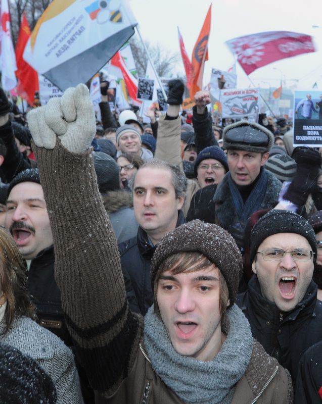 وقال سيرغي ميتروخين زعيم حزب يابلوكو الليبرالي "لقد اكتشف فلاديمير بوتين وديميتري مدفيديف اليوم حقيقة مزعجة بالنسبة لهما وهي ان لروسيا شعبا" ليرد عليه الجمهور "نحن الشعب".