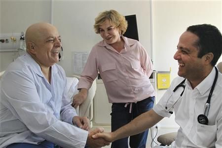 وصف الأطباء الذين يتولون علاج الرئيس البرازيلي السابق لويس ايناسيو لولا دا سيلفا من سرطان الحلق استجابته للعلاج الكيماوي بانها "رائعة". وقال الاطباء إن حجم الورم في حلق الرئيس البرازيلي السابق انكمش بنسبة 75 بالمئة. وخضع لولا الذي يحظى بشعبية واسعة للمرحلة الثالثة والاخيرة من العلاج الكيماوي يوم الاثنين ويليه العلاج الإشعاعي في الأشهر المقبلة وينتهي في فبراير شباط.