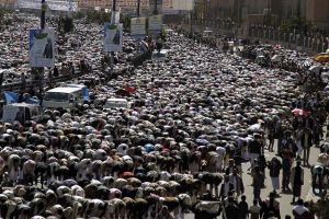 وفيما كان أحد المتحدثين في المسجد يحاول إسكات الجمهور صاح رجل قائلاً "ابني شهيد قتلوه" وهتفت الحشود "بالروح بالدم نفديك يا شهيد". وقال المراقب "سمعت من عدد كبير منكم لكن الذي سمعته أن هناك دما يجري. وهذا شيء أكيد وأن مهمتنا كمراقبين ليس أن نتكلم ولكن أجبرني الحدث أن أتكلم".