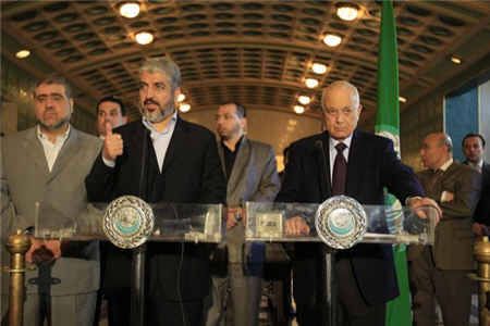 وصرح مشعل للصحافيين بعد مباحثات مع الأمين العام للجامعة العربية نبيل العربي أن "حماس تعهدت بإنجاح المصالحة لإنهاء الانشقاقات في صفوف الفلسطينيين وتشكيل حكومة وتنظيم انتخابات والإفراج عن كافة المعتقلين".