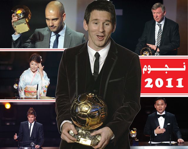 توج نجم برشلونة الاسباني الدولي الأرجنتيني ليونيل ميسي بجائزة الكرة الذهبية التي تمنحها مجلة "فرانس فوتبول" والاتحاد الدولي لكرة القدم "فيفا" لأفضل لاعب في العالم، وذلك للمرة الثالثة على التوالي.