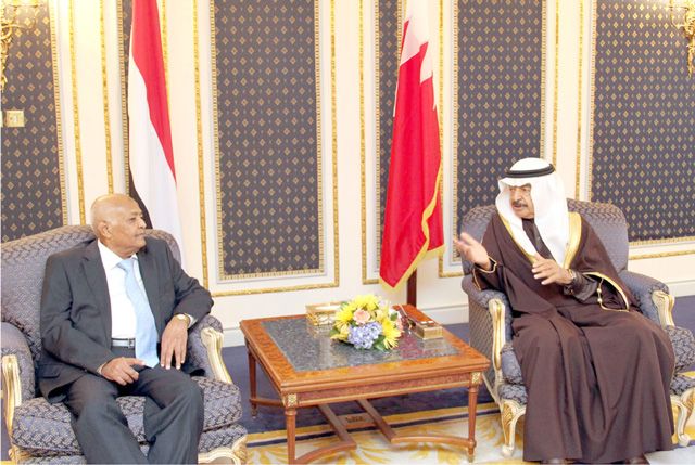 أكد رئيس الوزراء صاحب السمو الملكي الأمير خليفة بن سلمان آل خليفة، لدى لقائه رئيس مجلس الوزراء بالجمهورية اليمنية الشقيقة محمد سالم باسندوه، صباح أمس الخميس (12 يناير/ كانون الثاني 2012) بديوان سموه، الثقة في قدرة أبناء اليمن على الحفاظ على أمنه واستقراره، فيما أكد رئيس مجلس الوزراء اليمني شكر اليمن على مواقف مملكة البحرين تجاهها في مختلف المجالات، منوهاً بمسار التنمية المتقدم في مملكة البحرين.