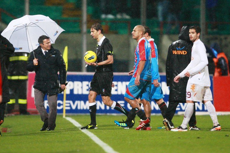 تسببت الأمطار الغزيرة في توقف المباراة بين فريقي كاتانيا وروما أمس السبت في افتتاح منافسات المرحلة الثامنة عشرة من الدوري الإيطالي لكرة القدم، وذلك عندما كان الفريقان متعادلين 1/1.