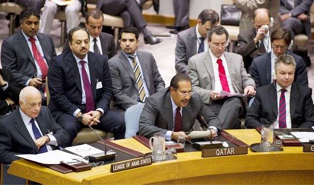 ودعا رئيس الوزراء القطري الأمم المتحدة إلى اعتماد مشروع القرار الذي تقدمت به المغرب ويدعو إلى تسليم الرئيس السوري مهامه إلى نائبه لإنهاء العنف والبدء بمفاوضات لإيجاد حل للأزمة، معتبراً أن عدم قيام مجلس الأمن بذلك سيوجه «رسالة خاطئة» للنظام السوري تشجعه على الاستمرار بـ «آلة القتل».