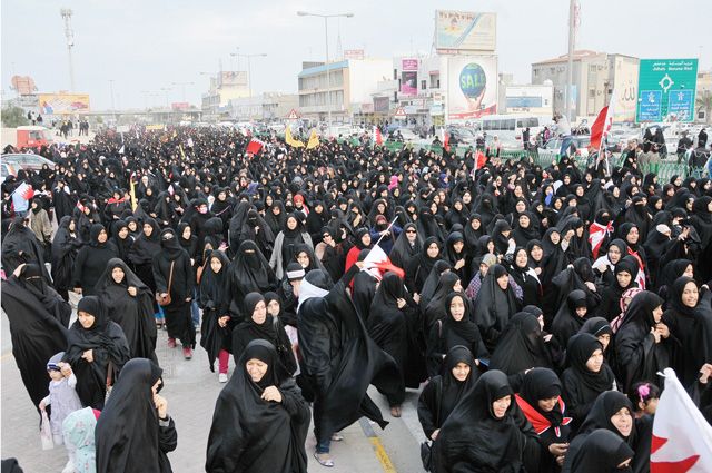 جددت الجمعيات السياسية (الوفاق، وعد، الاخاء، التجمع القومي، التجمع الوطني) في مسيرة جماهيرية حاشدة بعنوان «صرخة شعب» نظمتها عصر أمس وانطلقت من دوار عبدالكريم انتهاءً عند دوار الشاخورة، مطالبة بـ«التحول الديمقراطي السريع وتلبية المطالب التي نصت عليها وثيقة المنامة»، مؤكدة «الحق في التظاهر السلمي في أي منطقة في البحرين»، ومشددة على تمسكها بـ«الخيار السلمي كخيار استراتيجي»، وبينت أن «الحراك هو حراك سياسي»، رافضة حرفها إلى مواجهات أمنية.