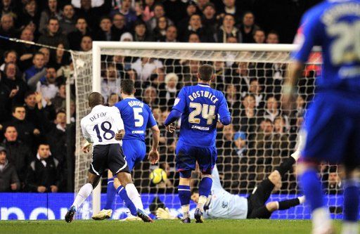 وتعرض فريق توتنهام لصدمة مبكرة، حيث تقدم ستيفينيج بهدف بعد مرور أربع دقائق من بداية المباراة عن طريق ضربة جزاء نفذها جويل بيروم.ولكن أصحاب الأرض استعادوا توازنهم سريعا وردوا بهدف سريع في الدقيقة 25 عن طريق جيرمين ديفو.وبعد مرور عشر دقائق من بداية الشوط الثاني تمكن المهاجم التوجولي الدولي ايمانويل اديبايور من تسجيل الهدف الثاني لتوتنهام.