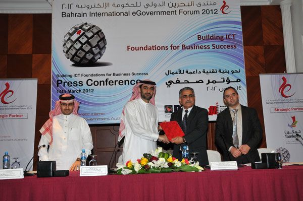أعلنت اللجنة المنظمة في مؤتمر صحافي اليوم الاربعاء (14 مارس / آذار 2012) عن إستعدادتها لإطلاق منتدى البحرين الدولي للحكومة الإلكترونية 2012 في نسخته الخامسة، والذي يقام تحت رعاية نائب رئيس مجلس الوزراء، رئيس اللجنة العليا لتقنية المعلومات والاتصالات سمو الشيخ محمد بن مبارك آل خليفة، من 9 إلى 11 أبريل / نيسان القادم بتنظيم من هيئة الحكومة الإلكترونية وبالتعاون مع جمعية المهندسين البحرينية، وجمعية البحرين للانترنت، ومعهد إدارة المشاريع (فرع الخليج).