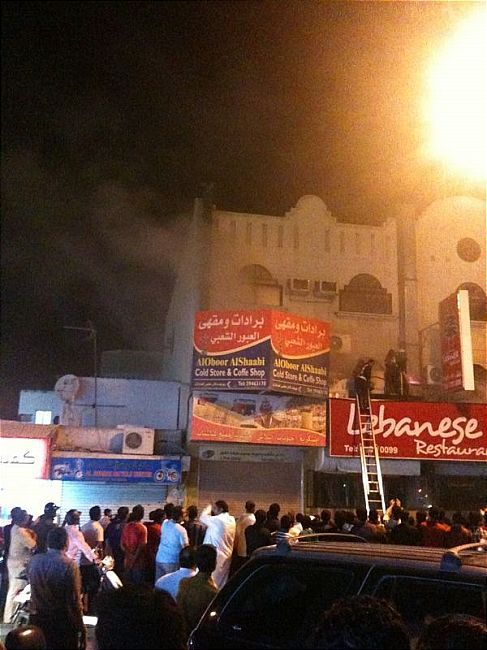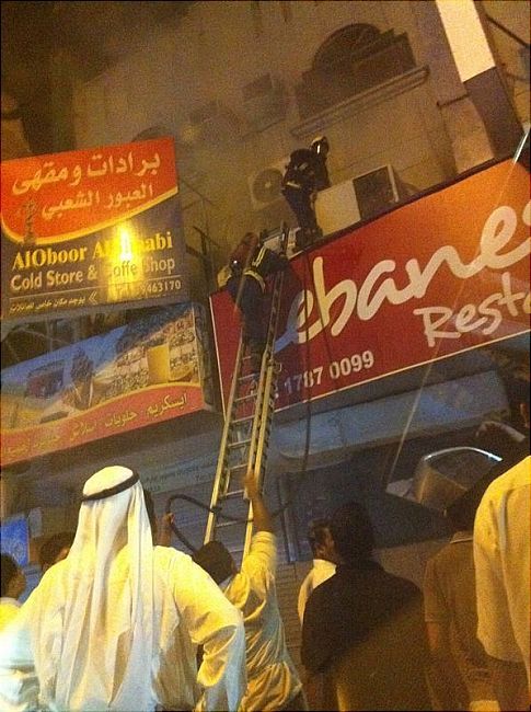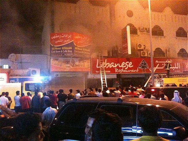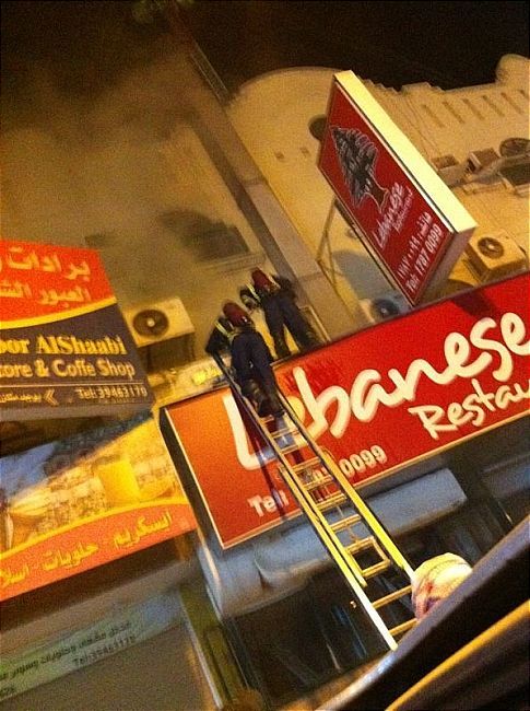 اندلع حريق مساء اليوم الأربعاء (14مارس-آذار2012) بالمطعم اللبناني بشارع المحلات التجارية بجد علي بمنطقة مدينة عيسى ، وقد تمكن جميع المتواجدين بالداخل من الخروج ولم تسجل أي إصابة بشرية بالحادث .