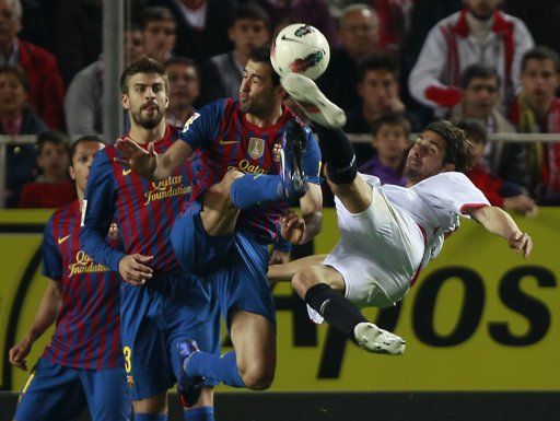 وافتتح تشابي التسجيل لبرشلونة من ركلة حرة في الدقيقة 18 ثم رفع ميسي أفضل لاعب في العالم رصيده الى 31 هدفا في الدوري هذا الموسم بعدما ضاعف تقدم صاحب المركز الثاني في الدقيقة 25. وكان من الممكن أن تصبح النتيجة مختلفة كثيرا لولا تألق اندريس بالوب وفيكتور فالديس حارسي اشبيلية وبرشلونة على الترتيب.
