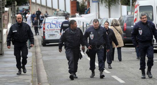 قال الرئيس الفرنسي، نيكولا ساركوزي الإثنين بعيد وصوله إلى تولوز (جنوب غرب) إن الاعتداء الذي قتل فيه أربعة أشخاص بينهم ثلاثة أطفال أمام مدرسة يهودية بالمدينة، يشكل «مأساة وطنية». وأعلن ساركوزي عن دقيقة صمت الثلثاء في كافة المدارس وقال «سيبذل كل جهد من أجل العثور على منفذ الاعتداء»، مضيفاً أن وزير الداخلية، كلود غيان «سيبقى في تولوز طالما لزم الأمر» لمتابعة هذه القضية.