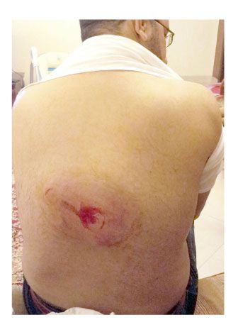 وتابع «بعد أن تم فحصي من قبل طبيب المركز الصحي، تبيّن وجود كدمات، وسجحات على الظهر، إضافة إلى ألم في الظهر مع تورمه».