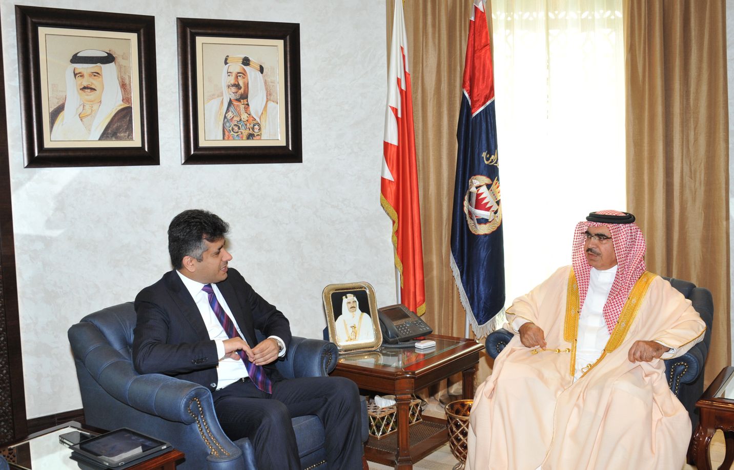 اجتمع وزير الداخلية الفريق الركن الشيخ راشد بن عبدالله آل خليفة بمكتبه في ديوان الوزارة ، صباح اليوم، مع وزير المواصلات كمال بن أحمد.