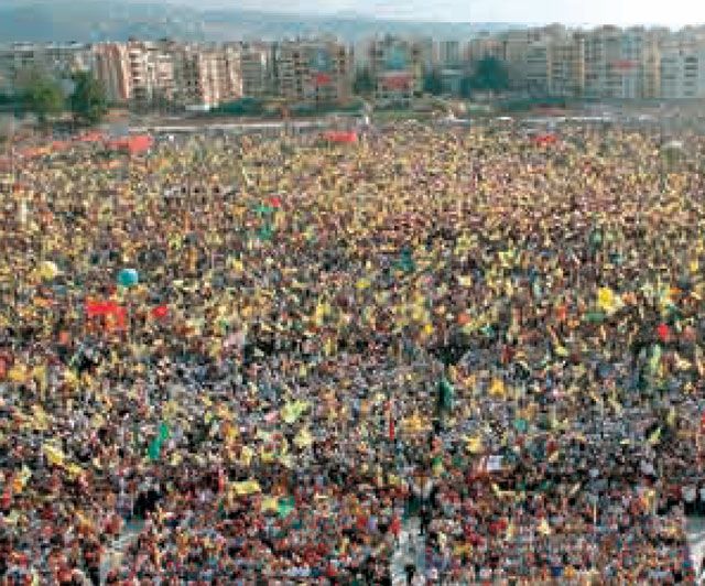 أعلن الأمين العام لحزب الله اللبناني السيدحسن نصرالله مساء أمس في أول ظهور علني له بعد العدوان الإسرائيلي على لبنان أن المقاومة حمت البلاد من الانقسامات والحرب الأهلية. وقال: »مقاومتكم هزت صورة (إسرائيل). دخلنا إلى عصر جديد نستطيع أن نملي فيه شروطنا على العدو. المقاومة هي التي حمت لبنان من الحرب الأهلية. لو انتصرت (إسرائيل) لسمعنا الحديث عن الفيدراليات والكونتونات«. وطالب نصرالله في مهرجان الانتصار الذي شارك فيه مئات الآلاف في الضاحية الجنوبية بـ »تشكيل حكومة وحدة وطنية«. واعتبر ان »الحكومة الحالية ليست قادرة لا على اعمار لبنان ولا على توحيد لبنان«. وأكد ان »أي جيش في العالم لن يستطيع أن يرغمنا على إلقاء سلاحنا«. وكشف عن أن »المقاومة تملك أكثر من عشرين ألف صاروخ«. وبشأن الرد على الخروقات الإسرائيلية المتكررة، قال الأمين العام: »لم نرد أن نسجل خرقا للقرار 1701 (...) إلا اننا لن نصبر طويلا«. وتابع »أقول للصهاينة إذا كان أحد قدم اليكم أي ضمانات أمنية فهي لا تعني المقاومة ولا تعني شعب لبنان«.