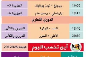 يضع الوسط الرياضي أمامكم برنامج اليوم الرياضي الكامل لقناةالبحرين الرياضية لليوم الجمعة الموافق 6/4.