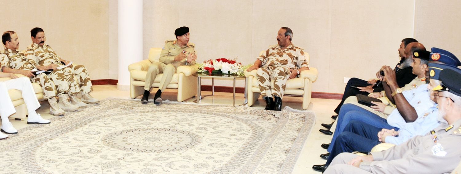 اجتمع القائد العام لقوة دفاع البحرين المشير الركن الشيخ خليفة بن أحمد آل خليفة في مكتبه بالقيادة العامة صباح اليوم (الأثنين 9 أبريل/ نيسان 2012) مع وفد من ضباط جامعة الدفاع الباكستانية وذلك بمناسبة زيارته لمملكة البحرين.