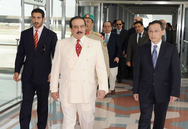 وصل عاهل البلاد حضرة صاحب الجلالة الملك حمد بن عيسى آل خليفة إلى العاصمة التايلندية (بانكوك) اليوم الجمعة (13 أبريل/ نيسان 2012) في زيارة لمملكة تايلند الصديقة يلتقي خلالها ولي عهد مملكة تايلند الأمير ماها فاجير الونجكورن ورئيسة الوزراء التايلندية ينجلوك شيناواترا لبحث علاقات الصداقة والتعاون التي تربط البلدين والشعبين الصديقين في المجالات المختلفة، إضافة إلى القضايا الإقليمية والدولية والمسائل ذات الاهتمام المشترك.