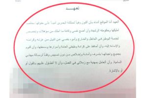 ونص الخطاب على أنه «بناء على التوجيهات الملكية بإعادة بناء المساجد التي تم هدمها وإزالتها في فترة السلامة الوطنية، وحيث إن أرض مسجد أبوطالب بمدينة حمد ضمن هذه المساجد التي تناولتها التوجيهات الملكية بإعادة بنائها، وأثناء وضع إعلانات البناء على أراضي المساجد لوحظ وضع إعلان بناء مسجد أبوطالب في أرض غير التي كانت مصلى للأهالي، وهو ما يخالف المراسلات والمستندات بين وزارة العدل والشئون الإسلامية والأوقاف والجهات الرسمية ذات العلاقة».