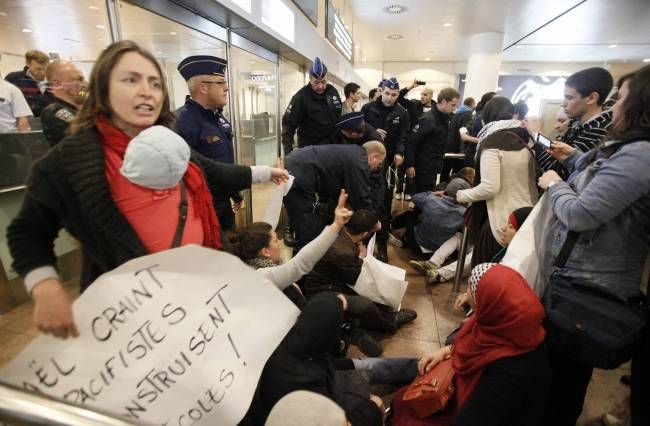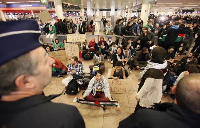 ووفقا للاذاعة العامة الاسرائيلية انتشر 650 رجل شرطة غالبيتهم بملابس مدنية الاحد في المطار وتلقوا اوامرا من رؤسائهم "بممارسة ضبط النفس ولكن اعتقال اي مثير للمشاكل".