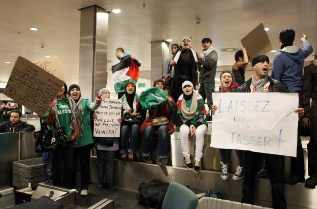 واضافت الاذاعة بان سلطات المطار تلقت ايضا اوامرا بجعل الطائرات التي يشتبه في انها تنقل نشطاء مؤيدين للفلسطينيين نجحوا في اجتياز نقاط التفتيش في المطارات التي غادروا منها بالهبوط في محطة الطائرات القديمة مشيرة الى انه سيتم القاء القبض على النشطاء الذين يتم اكتشافهم وترحيلهم فورا.